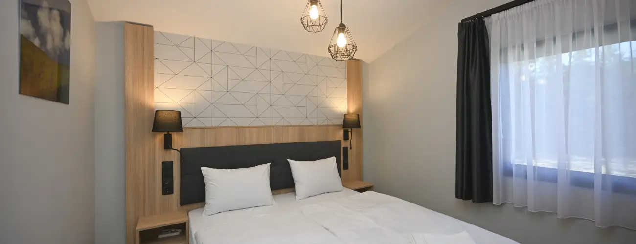 A szálloda 125 légkondicionált szobájában fürdőköpeny-bekészítés, hajszárító, televízió, ingyenes Wi-Fi, telefon, minibár és széf szolgálja a vendégek kényelmét. A szobák igény szerint franciaággyal vagy két külön ággyal foglalhatók. A legtöbb szoba erkéllyel rendelkezik. Előzetes egyeztetés alapján háziállat is bevihető a kijelölt szobákba. A szálloda kertjében 21 modern, jól felszerelt apartmanház kapott helyet, kétféle méretben. A 850 m2-es wellness részlegen úszómedence, élményelemekkel bővített medence, valamint szaunafalu várja a kikapcsolódásra vágyókat, finn- és infraszaunákkal, gőzkabinnal. A vendégek a világhírű harkányi gyógyvizet a szálloda saját beltéri medencéjében élvezhetik. 2026. január 12-től a gyógyvíz heti rendszerességgel, minden csütörtöki és szombati napon áll vendégeink rendelkezésére. A gyógyvizes részleg ezeken a napokon a megszokott rend szerint, zavartalan használattal működik. A szálloda tapasztalt szakácsai a hagyományos ízek mellett a korszerű táplálkozás szempontjait is figyelembe veszik. A kínálatban a magyaros fogások éppúgy megtalálhatók, mint a modern konyha ételei. A vegetáriánus, ételallergiás vagy speciális diétát követő vendégek számára egyedi étrend áll rendelkezésre. Az ételkínálatot a közeli Villányi borvidék boraival teszik teljessé, amelyek minőségét Magyarország legdélebbi, legnapsütésesebb szőlőültetvényei garantálják. A szállodát körülölelő 3 hektáros területen gondozott gyep, mediterrán növényekkel tarkított őspark található, amely a kiváló levegővel párosulva biztosítja a természetközeli pihenést. A vendégek számára multifunkcionális sportpálya, kerékpár- és sportszerkölcsönzés is rendelkezésre áll. A lobby-bár, a mediterrán hangulatú kerthelyiség és a klubhelyiség ideális helyszínt kínál a társas kikapcsolódáshoz - legyen szó sakkozásról, biliárdról vagy kártyajátékokról. A szálloda a régió legnagyobb konferenciaszállodájaként 270 fő befogadására alkalmas. Szankcionálható rendezvénytermei kiválóan alkalmasak kisebb meetingek, tréningek, kiállítások, esküvők és nagyobb konferenciák lebonyolítására egyaránt. Az AquaMed Hotel Harkány nyugodt, mégis turisztikai attrakciókban gazdag környezetben helyezkedik el. A vendégek számos programlehetőség közül választhatnak. Külön figyelmet érdemel Pécs több mint kétezer éves múltjával, épített és kulturális örökségeivel, valamint Villány, a vörösborok hazája, hangulatos pincesoraival. A Duna-Dráva Nemzeti Park, a drávai hajózás és a környék kerékpárút-hálózata mind hozzájárulnak az aktív kikapcsolódáshoz.