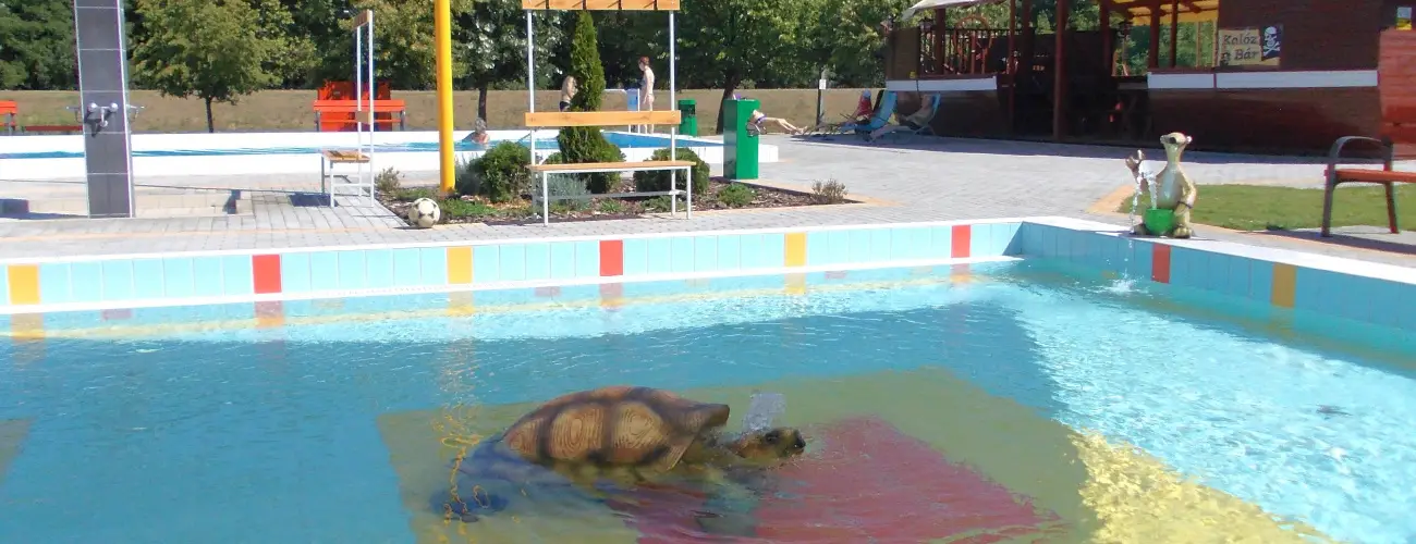 Egy márciustól novemberig üzemelő gyógyvizes és egy termálvizes, ponyva fedésű medence, valamint egy májustól késő őszig üzemelő strand- és egy gyermekmedence használata