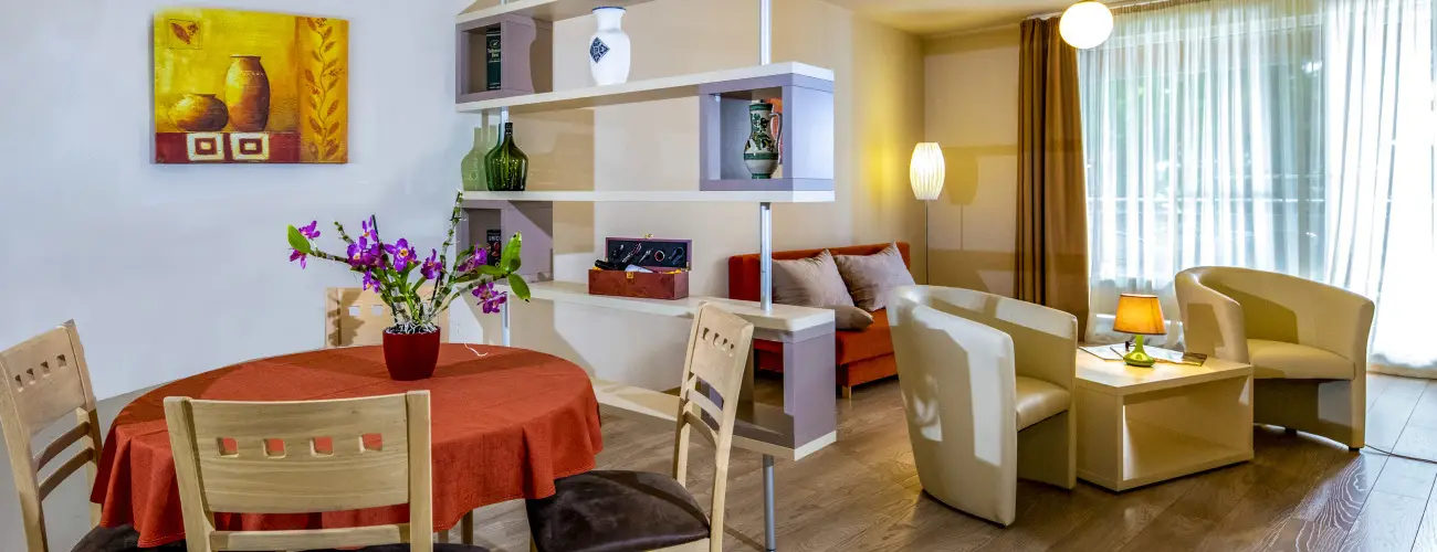 Az éttermi szolgáltatásokat a Dráva Hotel Thermal Resort**** éttermében biztosítják, mely kb 150-200 méterre található az Apartmanházaktól. A gasztronómiai kínálat kialakításában a nemzetközi ízek legjava mellett fontos szerepet kap hazánk és a szűkebb tájegység klasszikusainak felvonultatása. A konyha működésének alappillére a helyi termelők kiváló alapanyagainak felhasználása. A főszakács gyakori vendég a helyi piacon, ahol szakértő gonddal válogatja a vendégeink asztalára kerülő alapanyagokat. Az étlapon a hagyományos hazai ízek mellett nemzetközi ízkavalkádot talál. Élvezze ki a naponta változó büféválasztékot. Töltsön itt egy romantikus estét gyertyafényes vacsorával, válasszon az a'la carte étlapról. A Hotel chefje az ételintoleranciával élő vendégek számára is magas színvonalú ételeket készít. Kérjük, jelezze érkezését megelőzően, amennyiben módosított étrendet kíván igénybe venni.